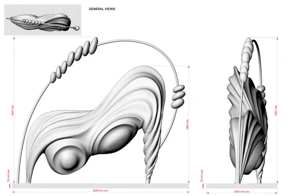 Notre équipe assure alors la continuité et la cohérence de toutes les étapes du projet : relevés sur site, conception technique, études structurelles et notes de calculs, prototypes, fabrication en ateliers, logistique transports, équipes de montage, pilotage du chantier. L’artiste et le donneur d’ordre ont alors un interlocuteur unique, garant de la fluidité des échanges et de la qualité du résultat.